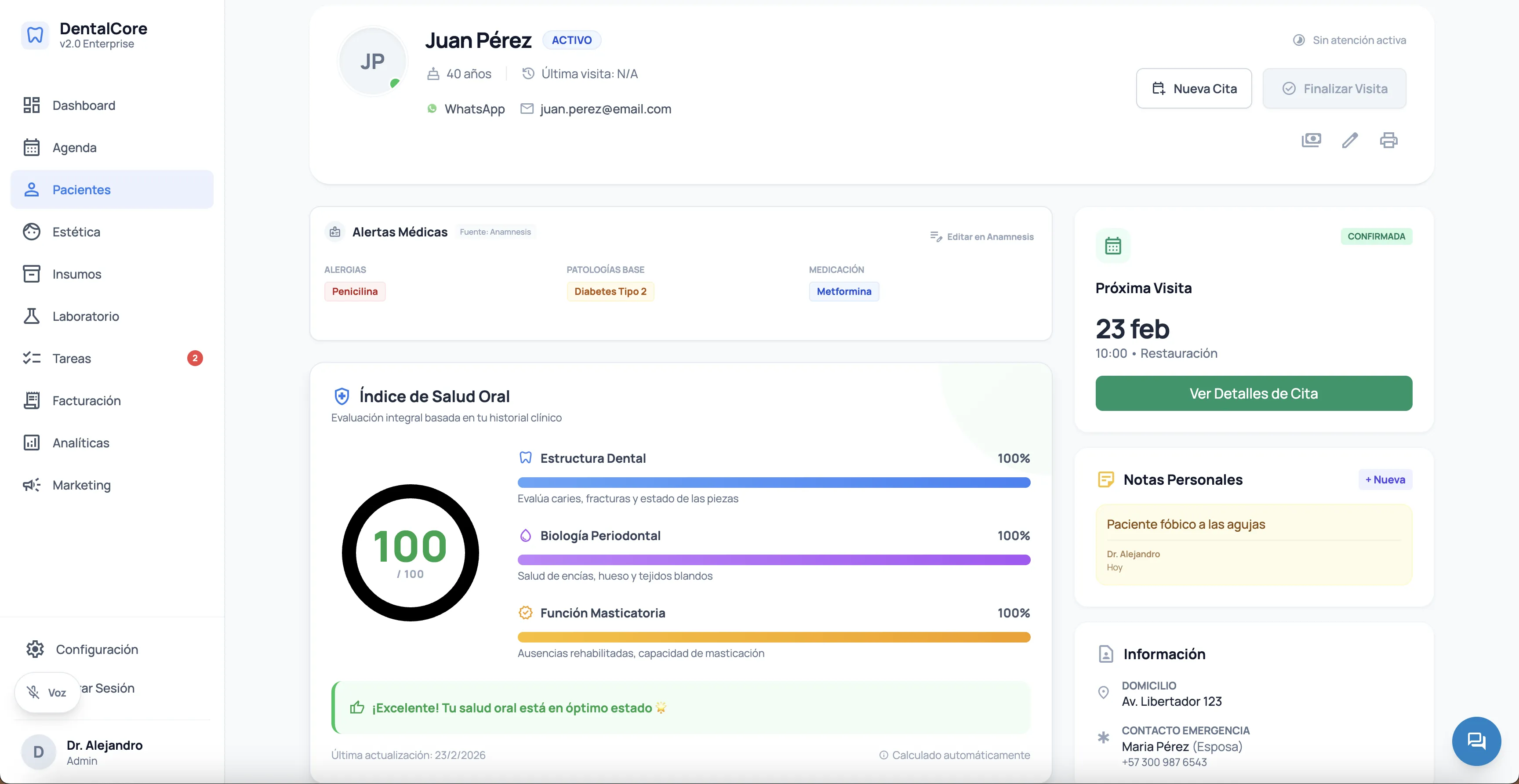 “Antes usaba Excel y perdía horas buscando fichas. Con DentalCore, recuperé 2 horas por día y mi clínica factura un 30% más porque no se me escapan cobros.”